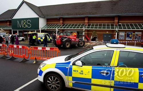 英国劫匪用挖掘机砸穿商店 偷走整个ATM机