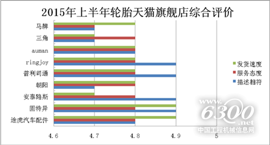 据中国轮胎商务网(www.tirechina.net)电商研究中心统计,目前进驻天猫旗舰店的轮胎品牌增至12家。从现有数据来看,无论是产品描述相符程度,还是商家发货速度和服务态度,各家轮胎品牌旗舰店的分数均维持在中等水平。此外,从消费者的打分和评价方面可以看出,目前商家的描述相符和服务态度的满意度普遍较低,商家仍需在这两方面多下功夫。
