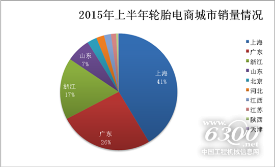 2015年上半年轮胎电商地域格局继续趋向多样化,电商领域“霸主”上海轮胎电商上半年度销量维持41%,广东轮胎线上销量奋力直追,占据“26%”,浙江省近几月销量持续稳居第三位。其他省市如江苏、江西等地电商也发展迅猛,试图在轮胎电商市场“分多一杯羹”,由此可见未来轮胎电商的的区域竞争势必更加激烈。