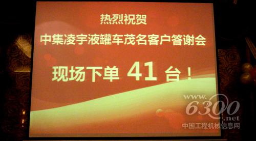 政策一公布,整个会场顿时沸腾一片,优秀的产品,空前的优惠,让不少老板都按捺不住内心的激动,陆续上台下单。短短20分钟时间,下单量达到41台,超过了我们的预期。由于时间较短,还有部分用户想下单,但规定时间内没拿定主意;应吴土新会长的建议,中集凌宇现场宣布:现场客户,在9月底之前下单,仍可享受每台车8000元的优惠!