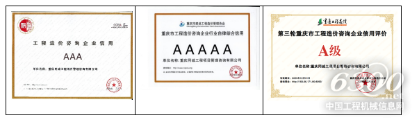 - 信用评价最高级:连续三年(2021-2023)获评重庆市住房和城乡建设工程造价总站“重庆市工程造价咨询行业信用评价A级企业” (最高级别);2022年11月,获中国建设工程造价管理协会颁发“全国造价行业企业信用等级AAA企业”(全国行业最高信用等级),成为行业信用建设的“标杆”。