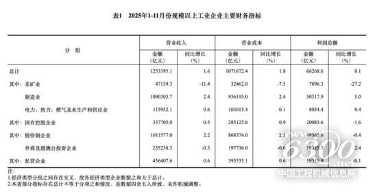 11月份,规模以上工业企业实现营业收入125.34万亿元,同比增长1.6%;发生营业成本107.17万亿元,增长1.8%;营业收入利润率为5.29%,同比下降0.08个百分点。