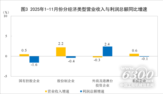 11月份,规模以上工业企业中,国有控股企业实现利润总额20083.6亿元,同比下降1.6%;股份制企业实现利润总额49565.6亿元,下降0.4%;外商及港澳台投资企业实现利润总额16355.3亿元,增长2.4%;私营企业实现利润总额19319.9亿元,下降0.1%