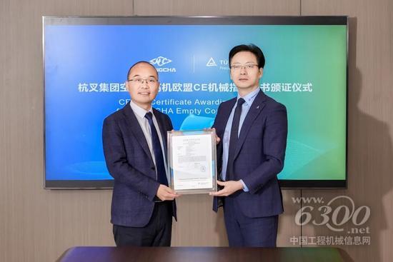 会上,双方正式签署战略合作协议,TüV莱茵向杭叉集团颁发了空箱堆高机欧盟CE机械指令认证证书,进一步确认了杭叉在产品质量、安全性能及技术创新方面的行业领先地位。