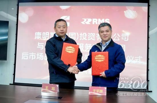 润通航运董事长王旭(左)、康明斯东亚分销事业部动力板块总经理于平原(右)代表双方签约
