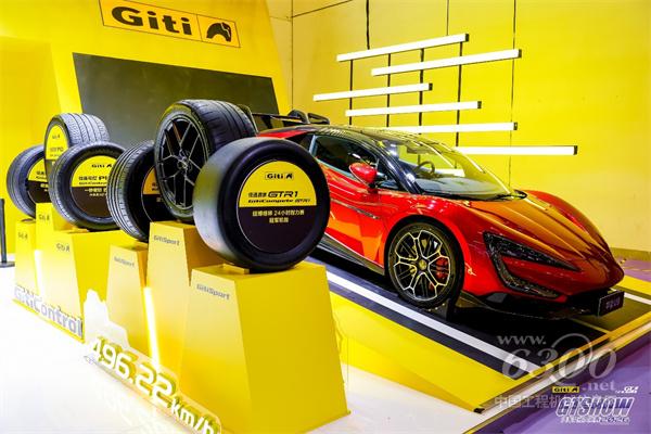 在佳通的展台上,配套仰望U9X的GitiSport e·GTR² ᴾᴿᴼ无疑是焦点。这款由佳通轮胎与仰望汽车联合定制开发的赛道级半热熔轮胎,是全球首款设计时速500km/h的电动车轮胎。