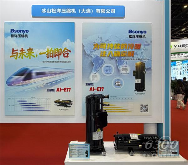 在冰山展区,松洋压缩机集中展示了覆盖车载、机房与储能、商用空调、冷冻冷藏、热泵采暖与烘干、工业热泵等多元场景的涡旋压缩机产品线。展品涵盖新能源车辆用R290环保冷媒压缩机、数据中心与储能温控用直流变频压缩机、R32 25HP商用空调压缩机、50HP大马力冷冻冷藏压缩机,以及多款热泵专用大排量直流变频压缩机等,充分体现了松洋在涡旋压缩机材料、结构、系统匹配等方面的全链条创新能力。
