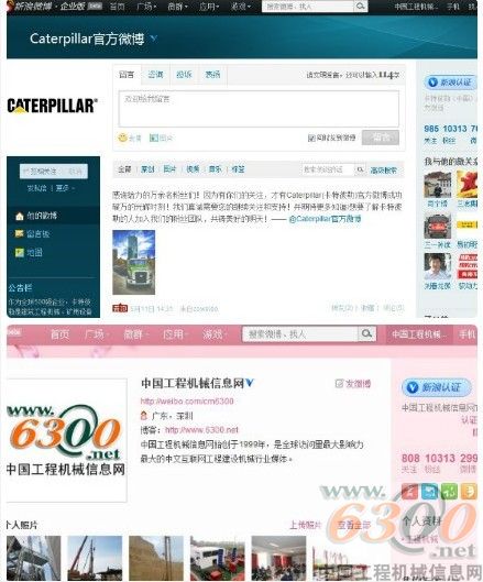截止2012年5月12日5:30PM, Caterpillar新浪官方微博(http://e.weibo.com/caterpillarinchina)和中国工程机械信息网新浪官方微博(http://weibo.com/cm6300)粉丝双双破万,并在同一刻拥有数量相同的专业粉丝数10313个。专家认为,全球最大的工程机械企业Caterpillar和全球访问量最大影响力最大的中文互联网工程建设机械行业媒体中国工程机械信息网官方微博粉丝双双破万,标志着工程机械行业进入微营销时代!