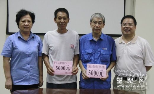 7月23日,玉林市总工会副主席杨发伟、劳动保护部部长杨济慈一行到玉柴亲切慰问“全国五一劳动奖章”获得者梁春威和广西劳模林庆清,并给劳模们每人送去了5000元的慰问金。