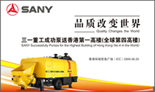 米的高度,以高超的混凝土泵送技术铸就了香港第一高楼。三一首创的超高压拖泵“静音”作业,世界独一无二的超高压管道水洗技术,在东方明珠树立起超高层绿色建筑的典范。 |